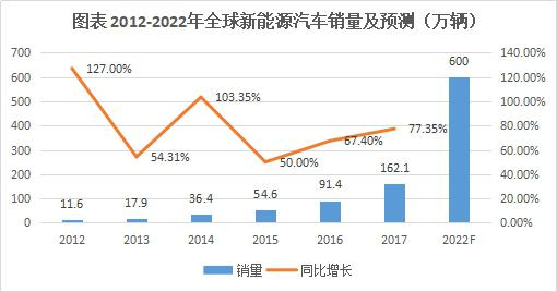 在此背景下,全球新能源汽車銷售量從2011年的5.1萬輛增長至2017年的1621萬輛,6年時間銷量增長30.8倍。未來隨著支持政策持續(xù)推動、技術(shù)進(jìn)步、消費者習(xí)慣改變、配套設(shè)施普及等因素影響不斷深入,GGI預(yù)計2022年全球新能源汽車銷量將達(dá)到600萬輛,相比2017年增長2.7倍。
