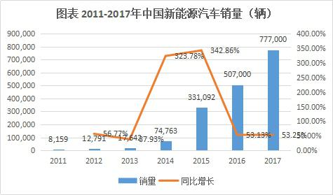 2017年,鋰離子電池主要應(yīng)用市場增速放緩,全年全球鋰離子電池產(chǎn)業(yè)規(guī)模超過3000億人民幣,增速較2016年下滑4個百分點。在新能源汽車推廣政策繼續(xù)推動下,2017年中國電動汽車產(chǎn)量達(dá)到65萬輛,在全球電動汽車市場占比將進(jìn)一步提升。