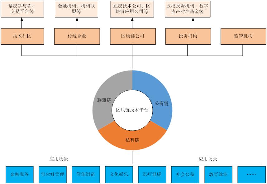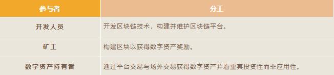 在區(qū)塊鏈技術(shù)開(kāi)發(fā)、區(qū)塊開(kāi)采、數(shù)字資產(chǎn)投資方面操作的參與者,大致可分為