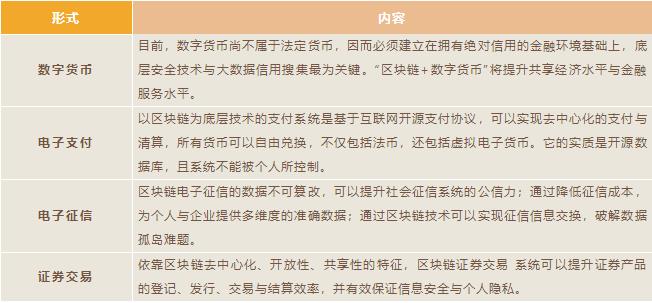 區(qū)塊鏈在金融領(lǐng)域的技術(shù)結(jié)合目前相對(duì)其它產(chǎn)業(yè)較為成熟。“區(qū)塊鏈+”作為金融科技的底層技術(shù)架構(gòu),可以通過(guò)多種形式改變以至重塑金融業(yè)運(yùn)行模式,主要包括以下幾個(gè)方面