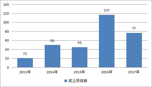 區(qū)塊鏈項(xiàng)目成立數(shù)量在2016年達(dá)到頂峰,在2017年出現(xiàn)一定回落。