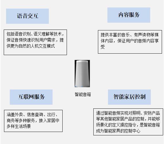 智能音箱是在傳統(tǒng)音箱基礎(chǔ)上增加了智能化功能,這功能體現(xiàn)在兩方面:一是技術(shù)上具備WiFi鏈接可語音交互;二是功能上可提供音樂、有聲讀物等內(nèi)容服務、互聯(lián)網(wǎng)服務以及場景化智能家居控制能力。