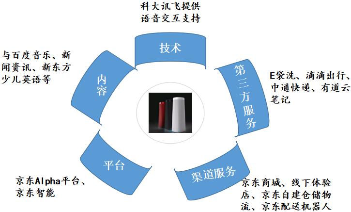 2.通過強強聯(lián)合的方式,京東通過電商平臺優(yōu)勢,整合行業(yè)中的技術(shù)廠商、內(nèi)容廠商及第三方服務廠商,并發(fā)起“京東智能音頻聯(lián)盟”,向聯(lián)盟內(nèi)成員輸出“JD+智能音頻解決方案”,實現(xiàn)叮咚音箱產(chǎn)品與優(yōu)質(zhì)內(nèi)容、服務的結(jié)合。