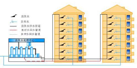 管道直飲水也稱(chēng)分質(zhì)供水,興建于20世紀(jì)90年代中期,主要分布在人口較為集中的學(xué)校、醫(yī)院、商務(wù)樓宇、較高檔的小區(qū)。分質(zhì)供水是以自來(lái)水為原水,把自來(lái)水中生活用水和直接飲水區(qū)分開(kāi),另設(shè)管道直通住戶(hù),實(shí)現(xiàn)飲用水和生活用水分質(zhì)、分流,達(dá)到直飲的目的。管道直飲水通過(guò)中央凈水設(shè)備在自來(lái)水提供的原水基礎(chǔ)上經(jīng)過(guò)再凈化過(guò)程提供給人們飲用,通過(guò)一些物理過(guò)濾、消毒殺菌等深度處理技術(shù)對(duì)自來(lái)水進(jìn)行進(jìn)一步處理,去除水中的有機(jī)物、重金屬、細(xì)菌、病毒等有害物質(zhì),滿(mǎn)足優(yōu)質(zhì)優(yōu)用、低質(zhì)低用的要求。
