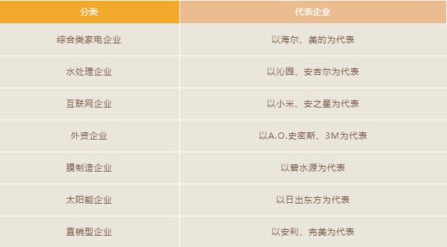 目前涉足凈水市場(chǎng)的企業(yè)大致可以分為以下八類(lèi):