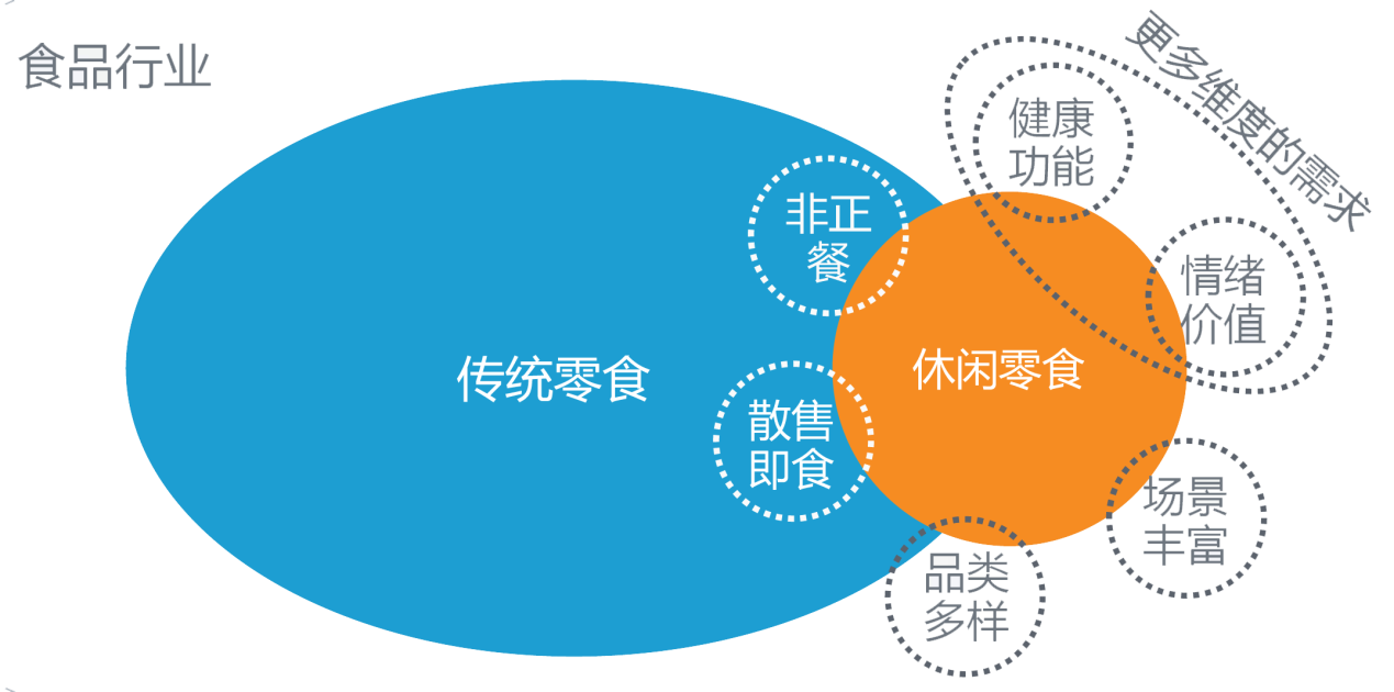 目前行業(yè)專家和資深從業(yè)者,往往認(rèn)為“休閑零食”和“休閑食品”,甚至是“零食”這樣的產(chǎn)品概念雖然互有區(qū)別,但某種意義上又是互相交融的,畢竟不同的概念也處在不停的變動(dòng)中,舊的概念在升級,新的概念在擴(kuò)展: