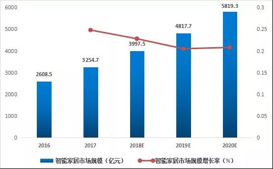 2016-2020e中國(guó)智能家居市場(chǎng)規(guī)模及增長(zhǎng)情況