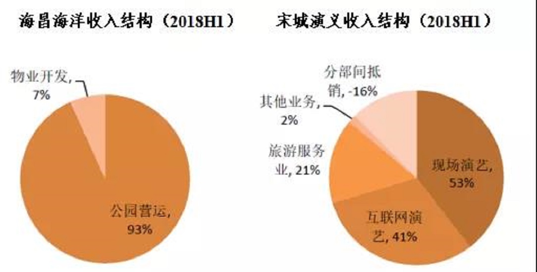 海昌海洋收入結(jié)構(gòu)(2018H1) 宋城演義收入結(jié)構(gòu)(2018H1)