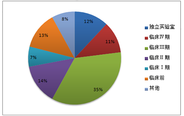 據(jù)美國臨床試驗數(shù)據(jù)庫等數(shù)據(jù)來源顯示,2014年全球 CRO 市場收入約 70%來自臨床市場。其中,臨床Ⅱ和臨床Ⅲ期占了全部收入的 50%左右。我國CRO市場臨床研究占到近60%。其中,臨床I至III期市場合計約 37%,占比相對較低,且服務水平尚有一定提升空間。近年來,隨著國內(nèi)大中型 CRO 企業(yè)在臨床試驗領域與跨國藥企開展合作,積累了越來越多的優(yōu)質(zhì)客戶和臨床試驗研究經(jīng)驗,服務水平也正在快速提高,并逐步向國際先進水平靠攏。