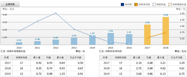 截至2017年7月17日,6個月以內(nèi)共有 17 家機構對泰格醫(yī)藥的2017年度業(yè)績作出預測;預測2017年每股收益 0.54 元,較去年同比增長 80%,預測2017年凈利潤 2.68 億元,較去年同比增長 90.4% 。