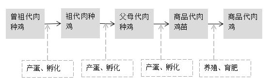 我國(guó)白羽肉雞祖代種雞養(yǎng)殖企業(yè)主要從國(guó)外引進(jìn)祖代肉種雞苗,繁育父母代肉種雞苗出售給父母代肉種雞養(yǎng)殖企業(yè),父母代肉種雞產(chǎn)蛋孵化出商品代雛雞銷(xiāo)售給代養(yǎng)戶,商品代肉雞經(jīng)屠宰加工后成為雞肉產(chǎn)品。白羽肉雞的目標(biāo)客戶主要是肯德基、麥當(dāng)勞等快餐消費(fèi)及分割產(chǎn)品出口。