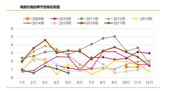 從歷史數(shù)據(jù)來(lái)看,年內(nèi)禽類(lèi)產(chǎn)品價(jià)格具有季節(jié)性,年內(nèi)一般有兩輪上漲:
