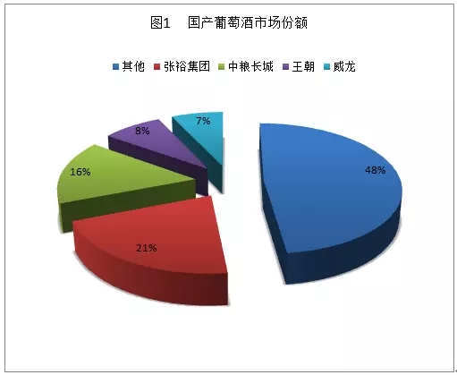 2000年開始,伴隨著新一輪消費(fèi)升級(jí)大潮的來臨,葡萄酒行業(yè)進(jìn)入快速發(fā)展期。近年來,隨著消費(fèi)者對(duì)葡萄酒的認(rèn)知出現(xiàn)變化,居民的消費(fèi)能力也出現(xiàn)上升,葡萄酒市場(chǎng)出現(xiàn)良好的發(fā)展勢(shì)頭,國(guó)內(nèi)一批葡萄酒企業(yè)紛紛打響了自己的品牌。目前,在我國(guó)的500多家葡萄酒企業(yè)中,已經(jīng)形成了以張?jiān)?、王朝、長(zhǎng)城等為龍頭的一線葡萄酒品牌。幾大品牌占據(jù)了國(guó)內(nèi)葡萄酒市場(chǎng)的大部分份額,集中度進(jìn)一步增大。其中,張?jiān)?、長(zhǎng)城、王朝的葡萄酒產(chǎn)量,占全國(guó)葡萄酒總產(chǎn)量的50%左右(圖1)。同時(shí)張?jiān)?、長(zhǎng)城和王朝的銷量占50%的市場(chǎng)份額。利潤(rùn)總額更是占到行業(yè)的67%。王朝、張?jiān)?、長(zhǎng)城三家國(guó)產(chǎn)品牌通過超市等多渠道的擴(kuò)張,已在國(guó)內(nèi)消費(fèi)者心目中占據(jù)重要的位置。