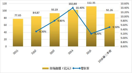 圖1 2011年—2016年前三季度全球