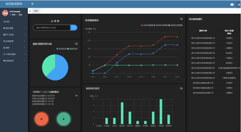 為進(jìn)一步全面推進(jìn)集團(tuán)公司國企改革三年行動工作落實落地,積極探索公司數(shù)字化轉(zhuǎn)型新路徑,推動數(shù)字經(jīng)濟(jì)與風(fēng)險防控深度融合,著力提升公司合規(guī)風(fēng)控及投后管理的標(biāo)準(zhǔn)化、規(guī)范化、信息化水平,銀川智慧信息科技有限公司根據(jù)集團(tuán)公司關(guān)于國企改革、數(shù)字化轉(zhuǎn)型和高質(zhì)量發(fā)展的整體工作部署,打造了投后管理系統(tǒng)平臺,目前,已正式投入使用。平臺旨在通過投后管理系統(tǒng)平臺進(jìn)行良好的投后管理,為化解風(fēng)險提供精準(zhǔn)有效的數(shù)據(jù)支撐,減少或消除潛在投資風(fēng)險,保障國有投資安全,實現(xiàn)國有資產(chǎn)的保值增值。
